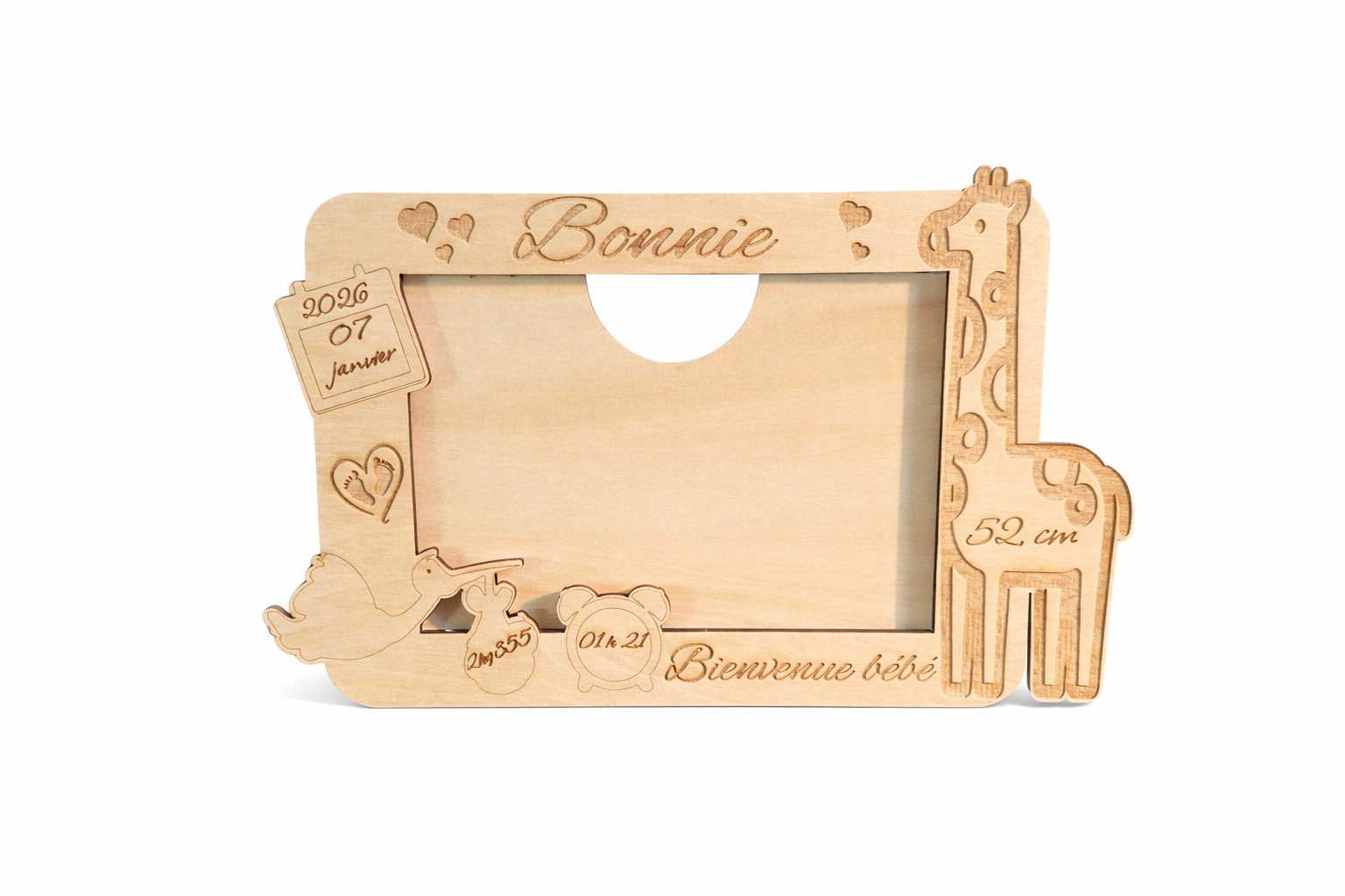 Immortalisez les premiers instants de vie de bébé avec ce cadre de naissance personnalisé, pensé comme un véritable souvenir à chérir pendant des années.