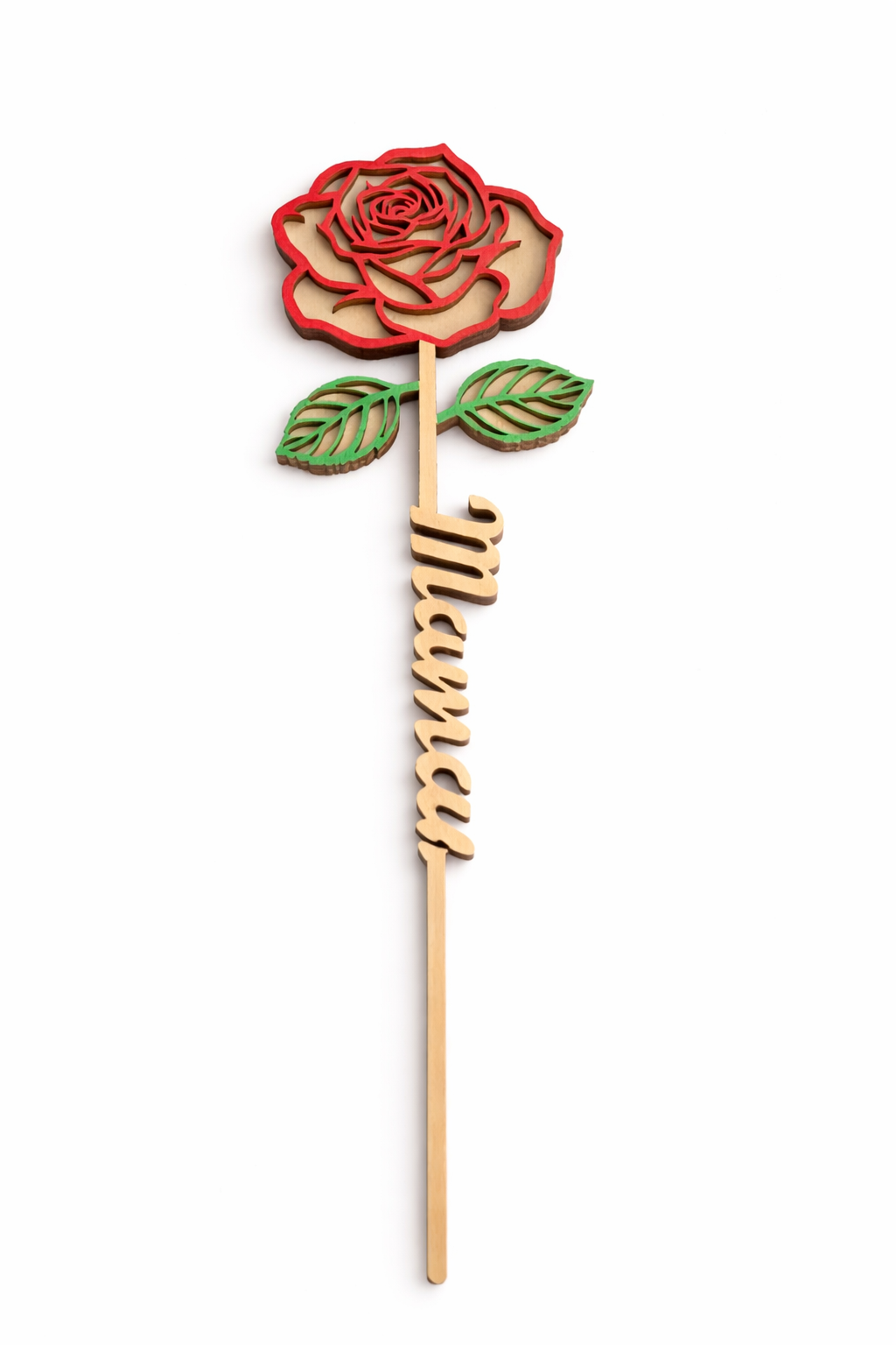 Finement découpée, elle représente une rose élégante accompagnée du mot « Maman », pour exprimer votre amour avec douceur. Contrairement à une fleur classique, cette rose ne fane pas et peut être conservée en souvenir ou utilisée en décoration.